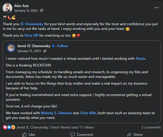 "I never realized how much I needed a virtual assistant until I started working with Alexis.